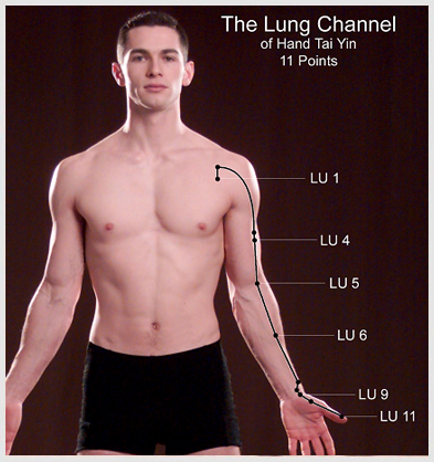 مریدین یا کانال ریه که با علامت اختصاری LU نشان داده میشود به صورت داخلی با روده بزرگ ارتباط برقرار کرده و سپس از طریق دیافراگم به ریه رسیده و سپس با حلق ارتباط پیدا کرده و سپس به پوست رسیده و نقطه LU1 شروع میشود که از ناحیه داخلی بازو به پایین حرکت کرده و از چین آرنج عبور کرده و به مچ دست رسیده شاخه ای از آن جدا شده و با LI ارتباط برقرار کرده و از کف دست عبور کرده و به نوک انگشت شصت دست میرسد.